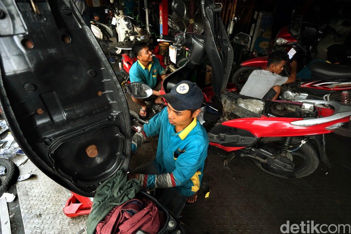 Jelang Liburan Malam Tahun Baru Bengkel Motor Laris Manis