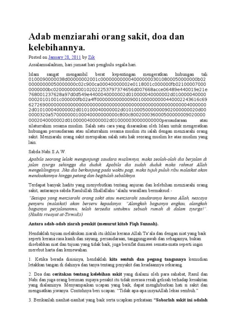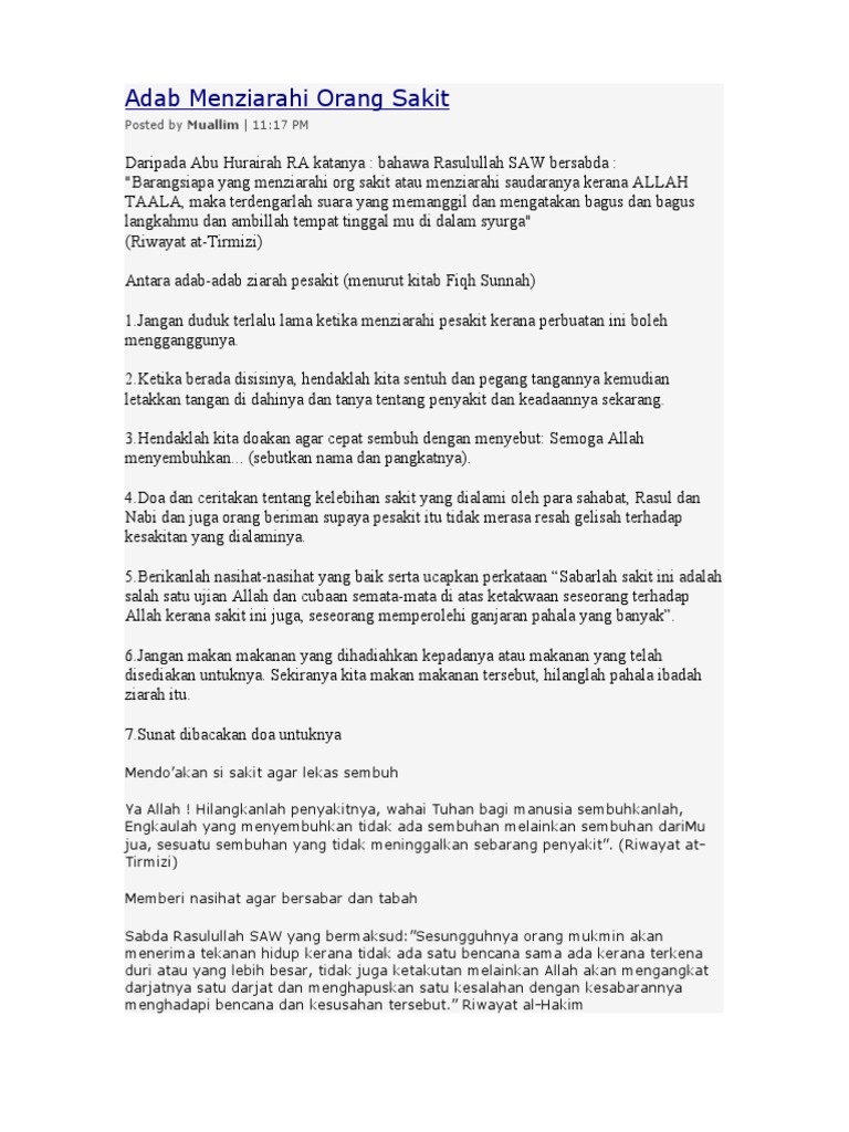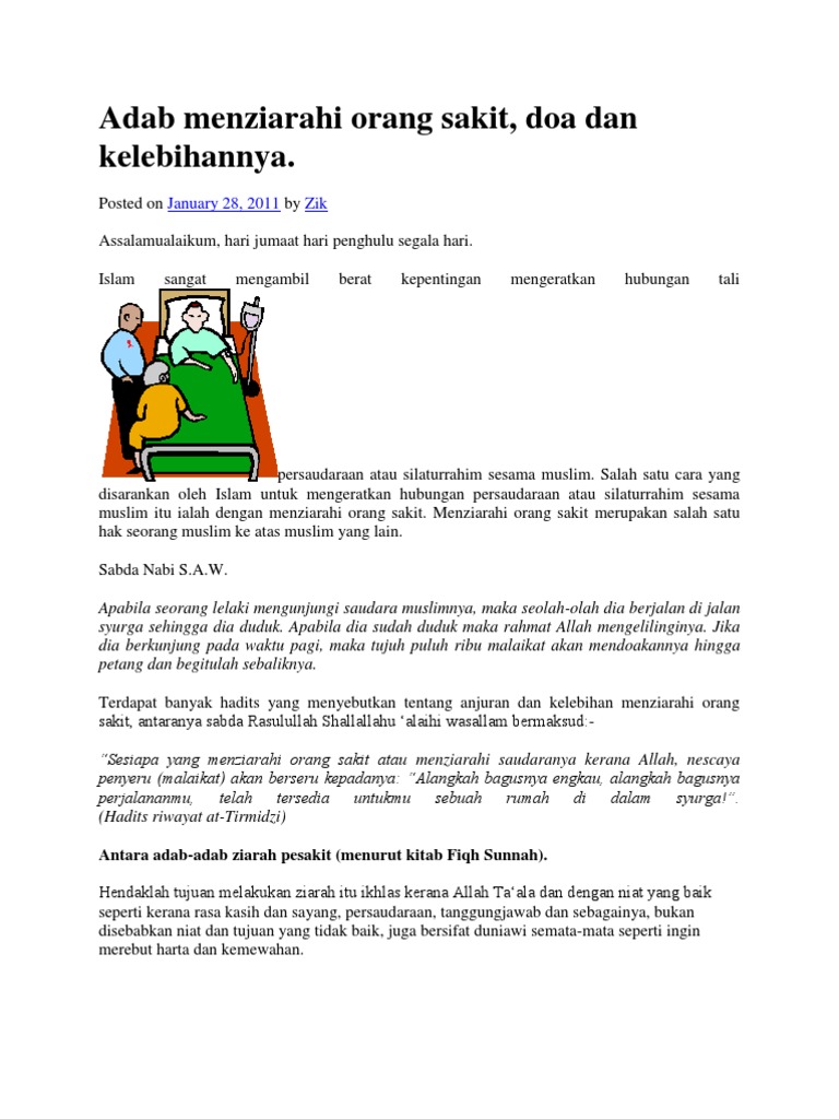 Adab Menziarahi Orang Sakit Doa Dan Kelebihannya January 28 2011 Zik