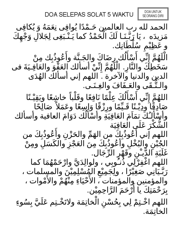Doa Selepas Solat 5 Waktu Doa Untuk Seorang Diri