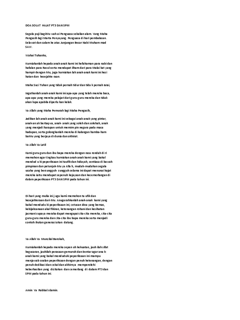 Doa Solat Hajat Untuk Pmr Dan Spm