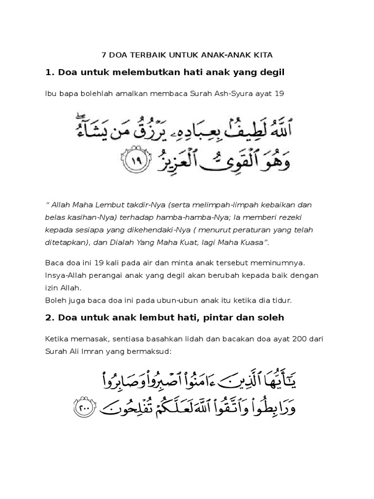 Doa Pelembut Hati Anak Anak Ibu Bapa Mithali Facebook