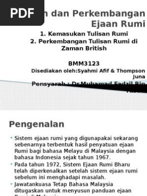 Sejarah Dan Perkembangan Sistem Ejaan Rumi Di Malaysia
