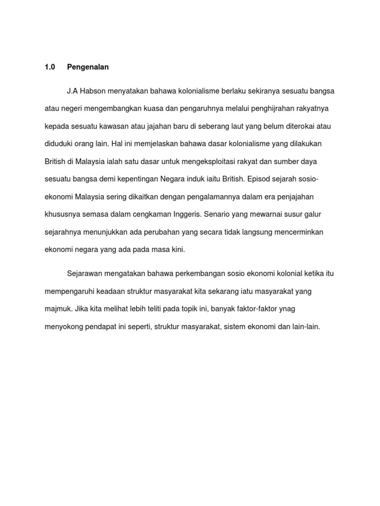 Pdf Soalan 6 Ekonomi Kapitalis Terutamanya Dalam Bijih Timah Telah Mengubah Lanskap Politik Dan Sosio Ekonomi Di Malaysia Bincangkan Hasbullah Salleh Academia Edu