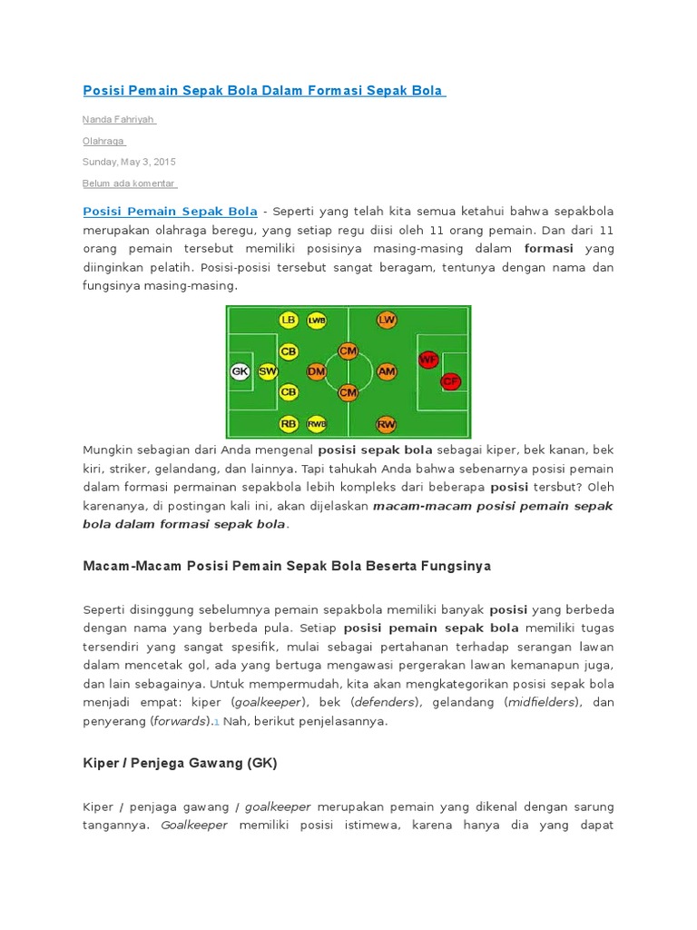 Nama Nama Posisi Pemain Sepak Bola Kaskus