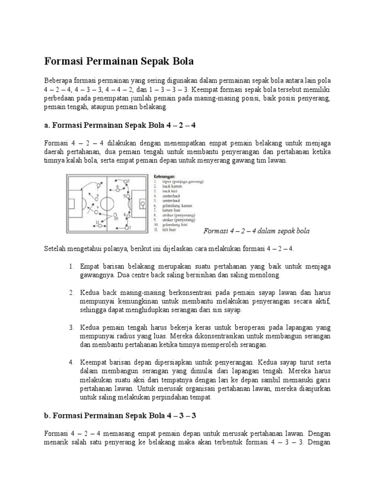 15 Formasi Sepak Bola Lengkap Olahragapedia Com