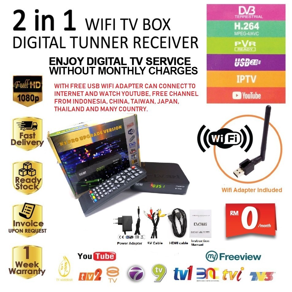 Myfreeview Mytv Decoder Dvb T2 Full Hd Box K2 Set Top Box Digital Receiver With Free Wifi Adapter Shopee Malaysia