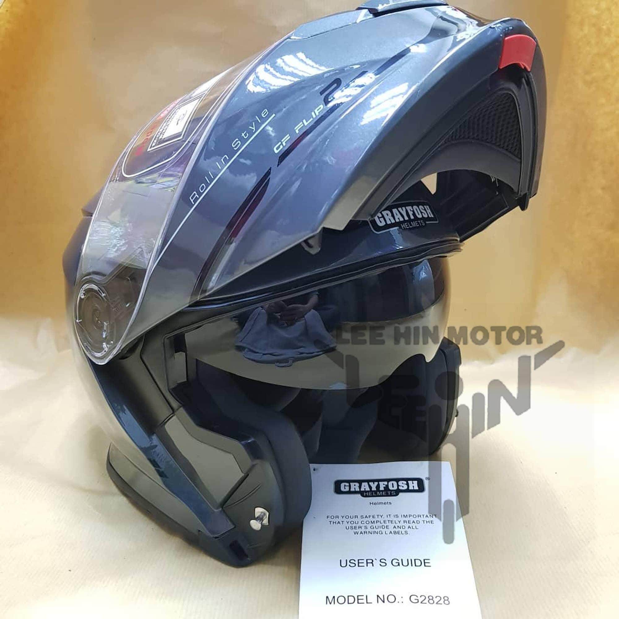Grayfosh G2828 Flip Up Double Visor Xl Full Face Helmet Grey Grey New Pgmall