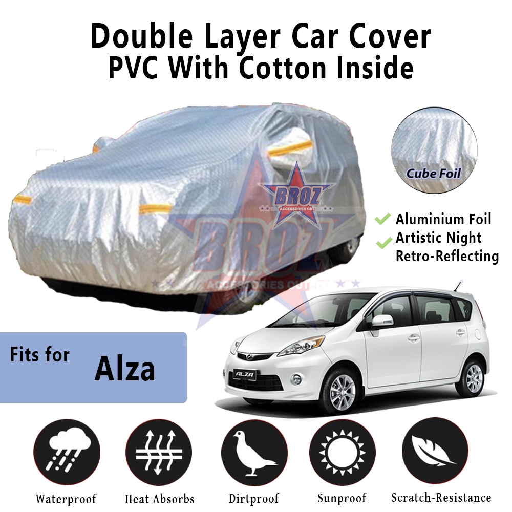 Perodua Alza High Quality Durable Anti Scratch Double Layer All Weather Pvc Cotton Aluminium Foil Car Body Cover Shopee Malaysia