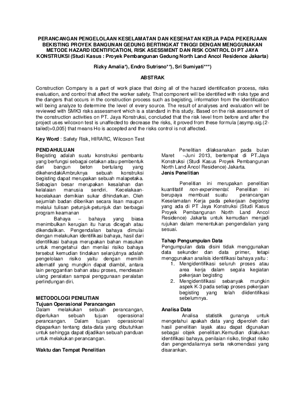 Pdf Perancangan Pengelolaan Keselamatan Dan Kesehatan Kerja Pada Pekerjaan Bekisting Proyek Bangunan Gedung Bertingkat Tinggi Dengan Menggunakan Metode Hazard Identification Risk Asessment Dan Risk Control Di Pt Jaya Konstruksi Studi Kasus