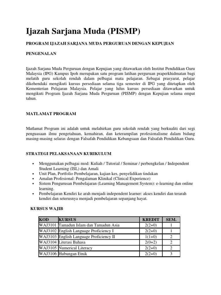 Doc Program Ijazah Sarjana Muda Perguruan Dengan Kepujian Tesl Pendidikan Rendah Institut Pendidikan Guru Kpm Rancangan Pengajaran Dan Pembelajaran Mingguan Kursus Major Tesl Tsl3104 English Phonetics And Phonology Noor Aqilah Kamarudin