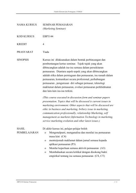 Nama Kursus Seminar Pemasaran Marketing Seminar Kod