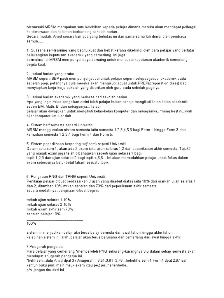 Selain daripada bertungkus lumus belajar sebagai orang islam kita percaya bahawa jika kita mengejar akhirat kita akan mendapat dunia sekali. 05 15 pagi bangun pagi gosok gigi mandi dan berwuduk aktiviti mentelaah dan menghafal 06 00 pagi solat subuh membaca al quran 07 00 pagi bersiap diri untuk ke sekolah dan bersarapan 07 45 pagi 02 00 petang di sekolah memberi penumpuan kepada proses pengajaran dan pembelajaran. Borang kelulusan ibu bapa.