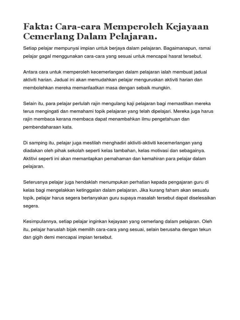 Pergaulan pergaulan bersama dengan semua orang tidak mengira lapisan masyarakat. Ulangkaji pelajaran persediaan untuk pengajian hari besok belajar malam 10 45 malam mengambil bekalan minda roti susu jus tok guru jus kurmamadu. Ini membantu kita menjadi pelajar cemerlang apabila sentiasa bersedia.