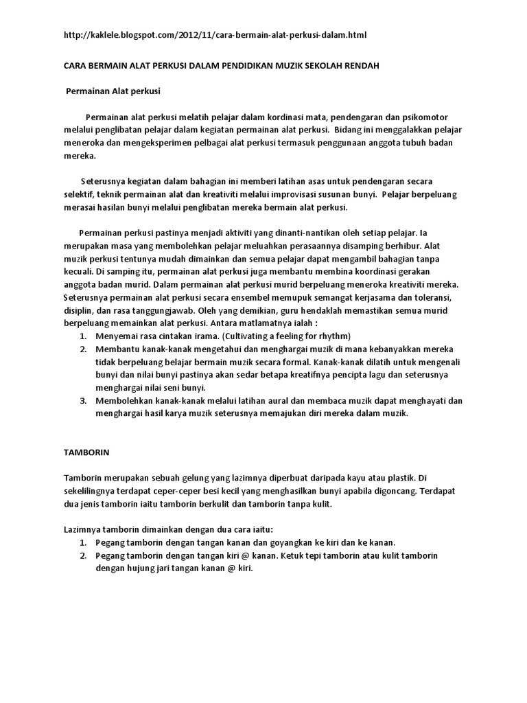 Perkusi Satu Metafora Kehidupan Cara Bermain Alat Perkusi Dalam Pendidikan Muzik Sekolah Rendah