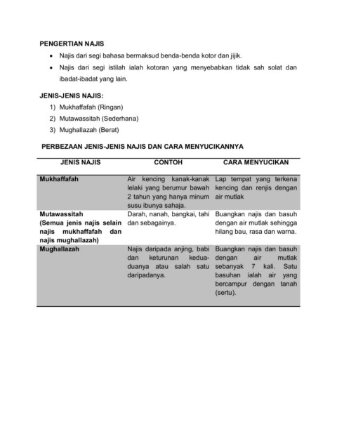 Pengertian Najis Dan Jenis Jenis Najis
