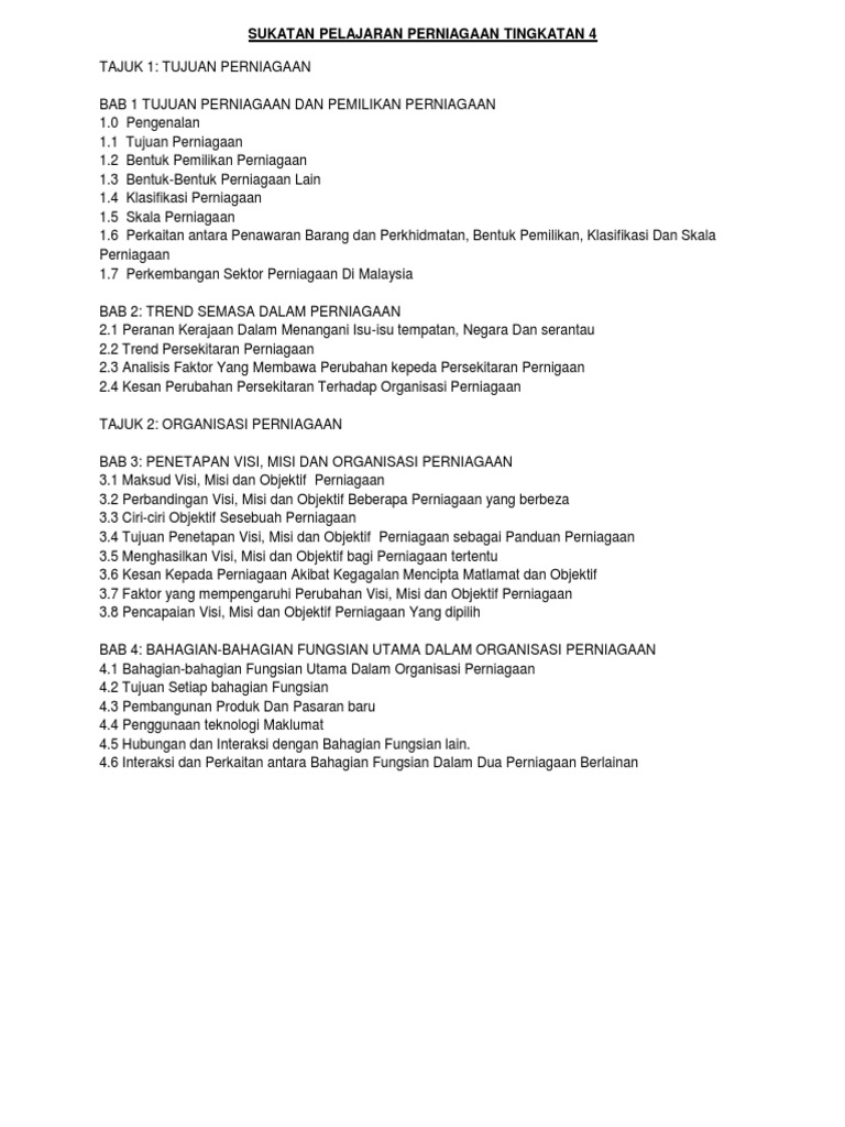 Sukatan Pelajaran Perniagaan Tingkatan 4