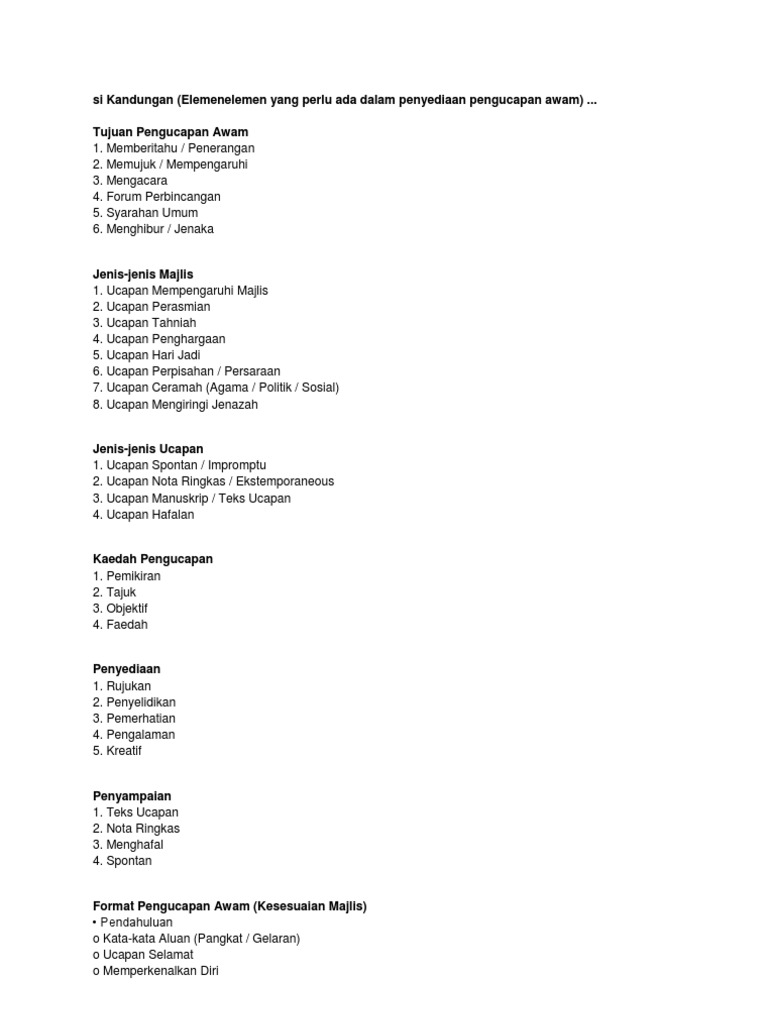 Si Kandungan Elemenelemen Yang Perlu Ada Dalam Penyediaan Pengucapan Awam Tujuan Pengucapan Awam