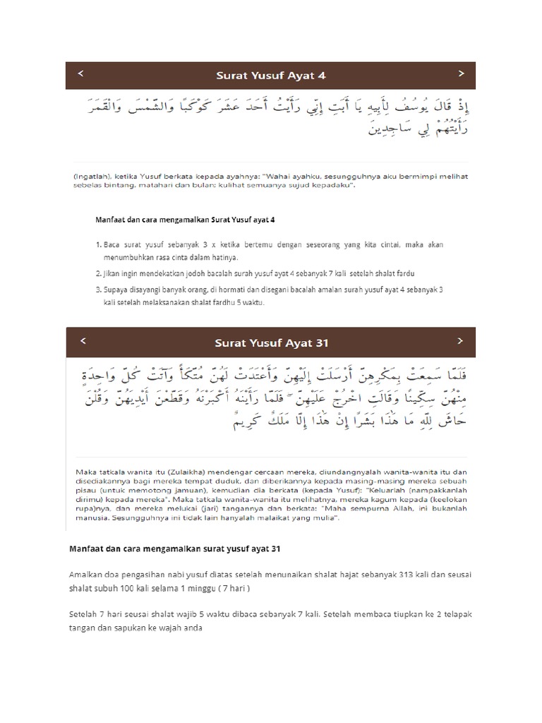 Kelebihan Surah Yusuf Ayat 4 Doa Bahagia Amal