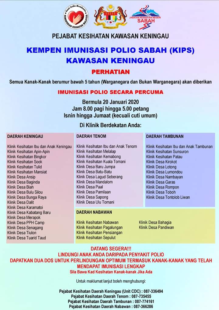 Jadual Lawatan Kempen Imunisasi Polio Pejabat Kesihatan Kawasan Keningau Facebook