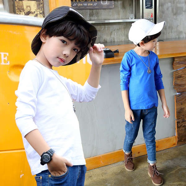 Baju Budak Lelaki 2 Helai T Shirt Lengan Panjang Kanak Kanak Katun Murni Warna Pepejal Musim Gugur Budak Lelaki Kemeja Putih Baju Putih Pakaian Kanak Kanak Lelaki Shopee Malaysia