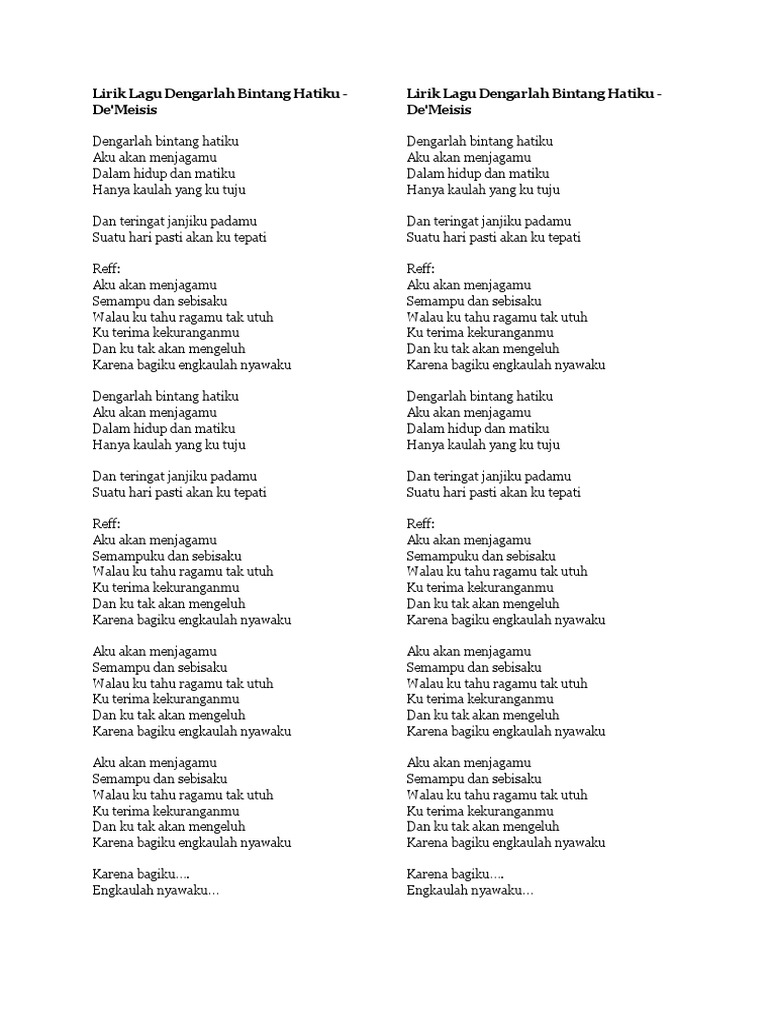 Dengarlah Bintang Hatiku De Meises Lirik Youtube