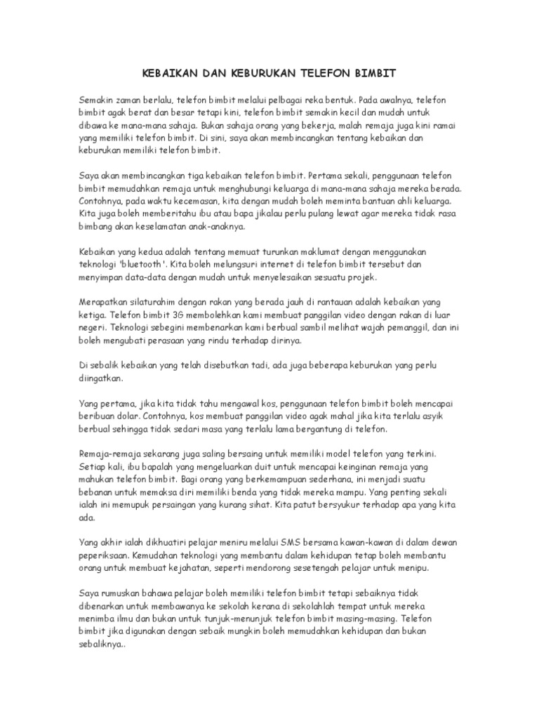 Karangan Kebaikan Dan Keburukan Telefon Docsity