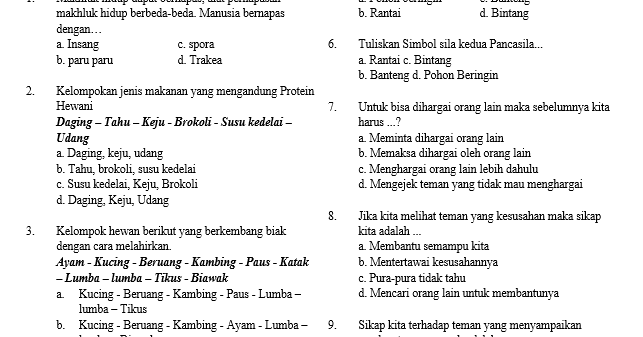 Kumpulan Soal Ujian Semester Kelas 3 Sd Mi Antapedia Com