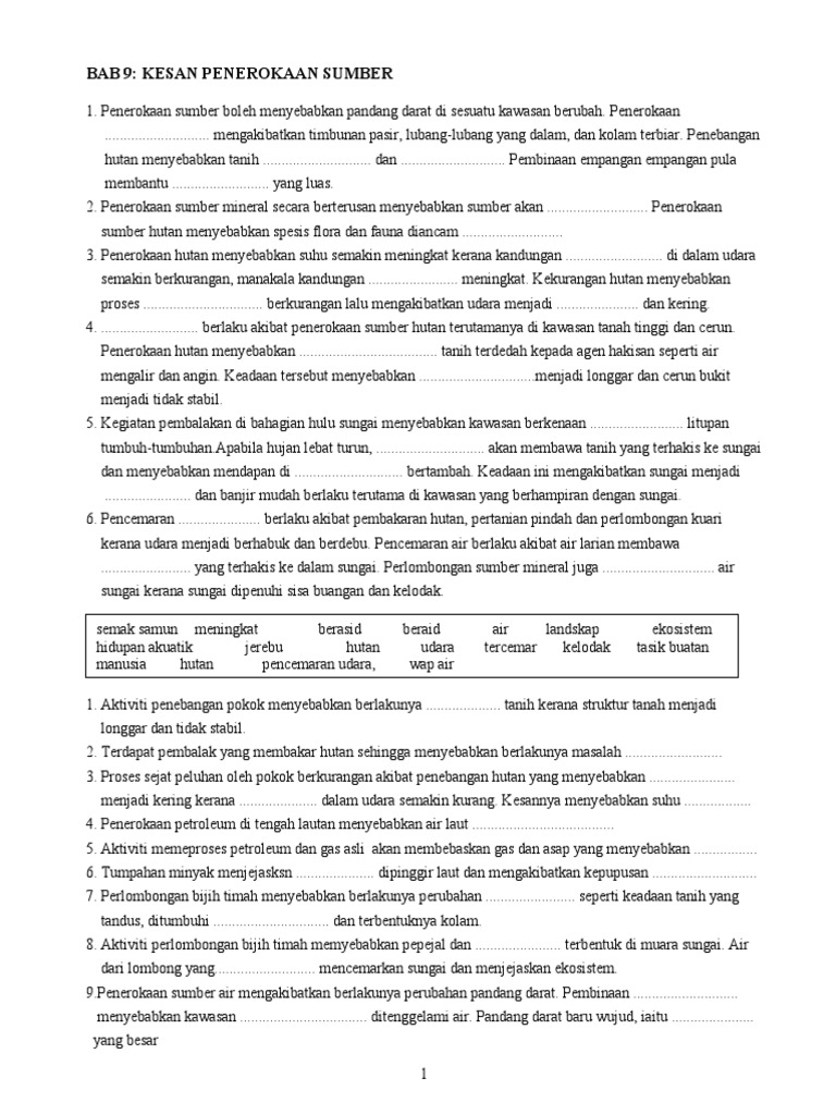 Latihan Ting 3 Unit 9 Kesan Penerokaan Sumber Terhadap Alam Sekitar