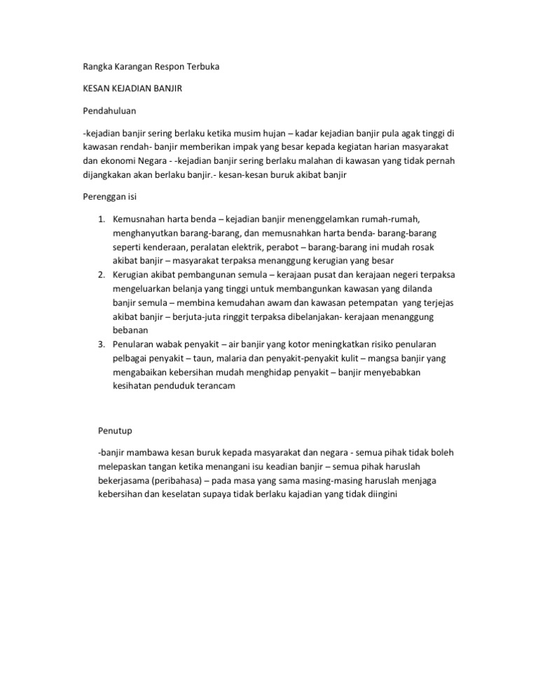 Rangka Karangan Respon Terbuka Kesan Kejadian Banjir Pendahuluan