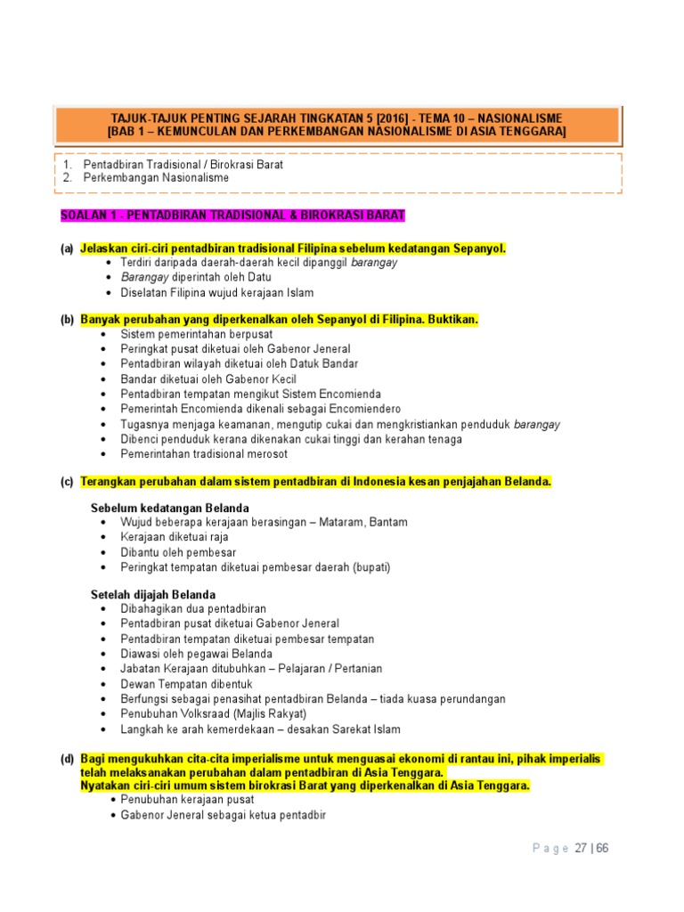 Nota Sejarah Tingkatan 5 Bab 1 Nasionalisme Di Asia Tenggara Peperiksaan