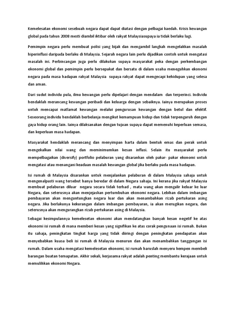 Esei Pengajian Am Kemelesetan Ekonomi