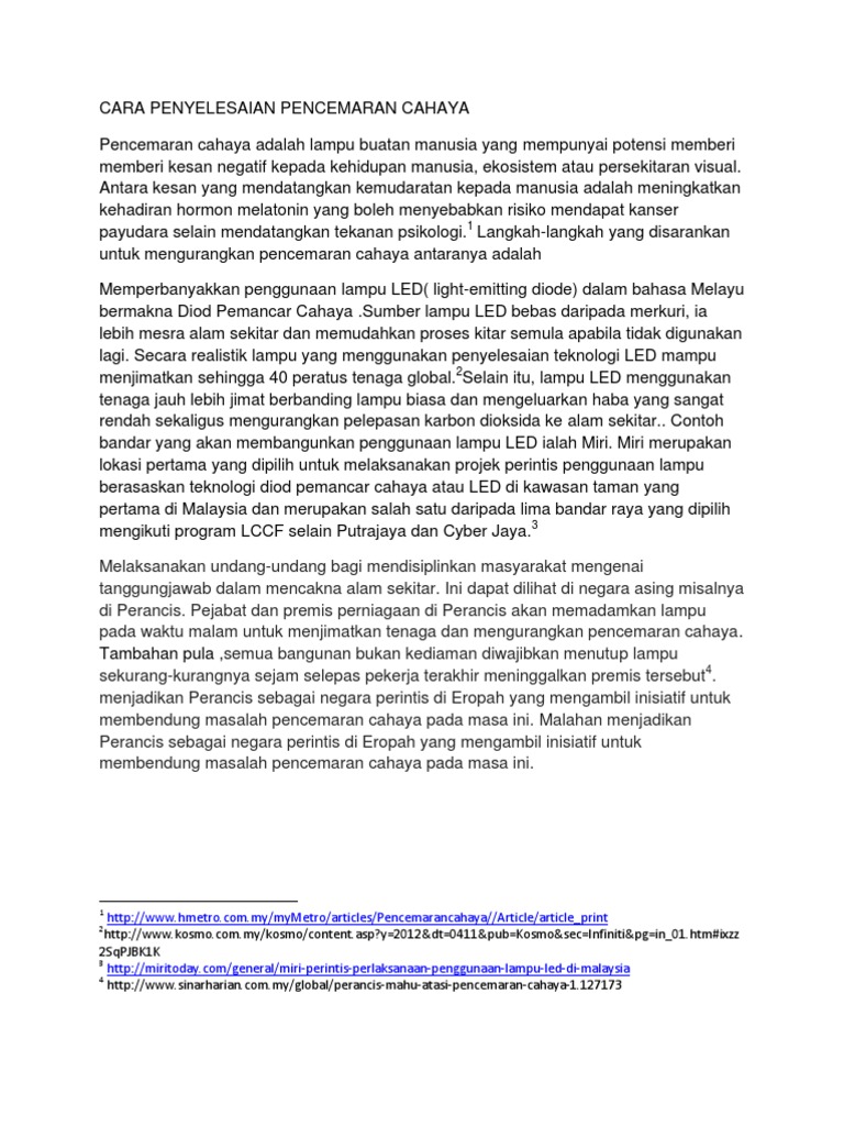 Cara Penyelesaian Pencemaran Cahaya