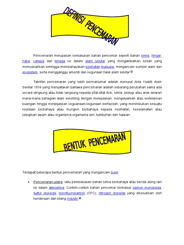 Pencemaran Merupakan Kemasukan Bahan Pencemar Seperti Bahan Kimia Docx