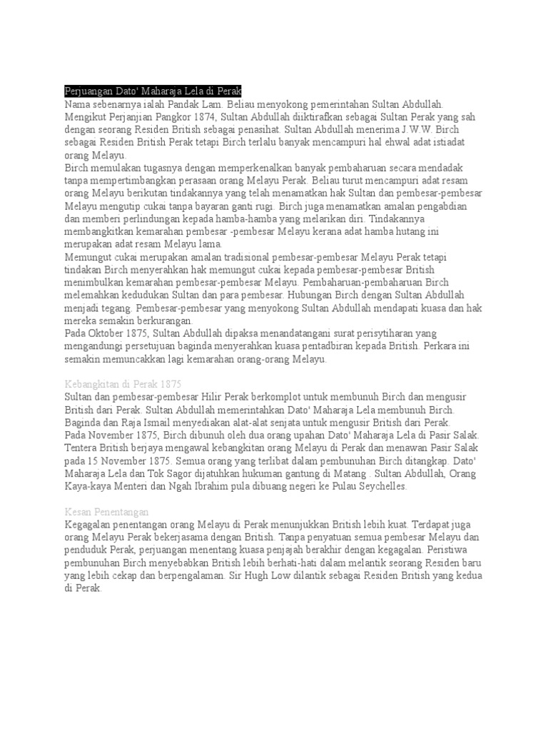 Tiohider Blog Archive Iktibar Daripada Perjuangan Dato Maharaja Lela