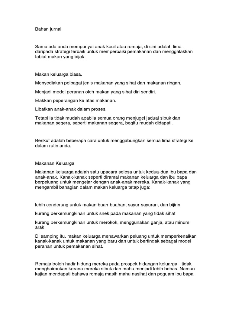 Amalan Pemakanan Sihat Untuk Kanak Kanak Dan Remaja