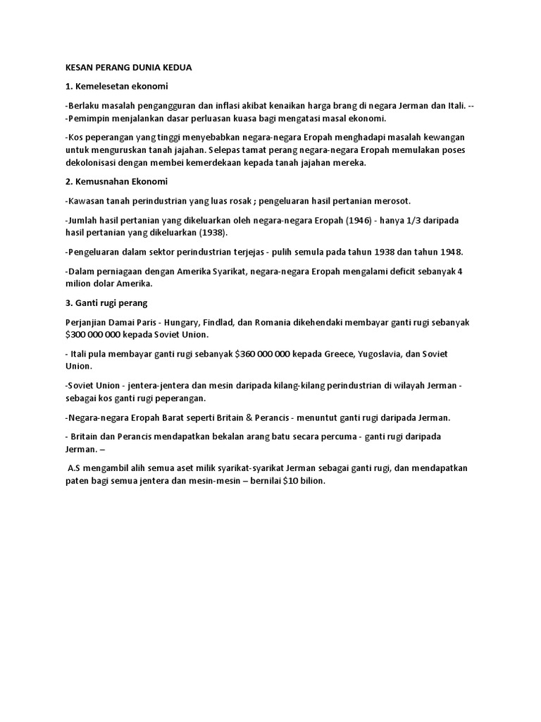 Kesan Perang Dunia Ke 2 Perjanjian Versailles Yang Berat Sebelah Perjanjian Ini Ditandatangani Agi