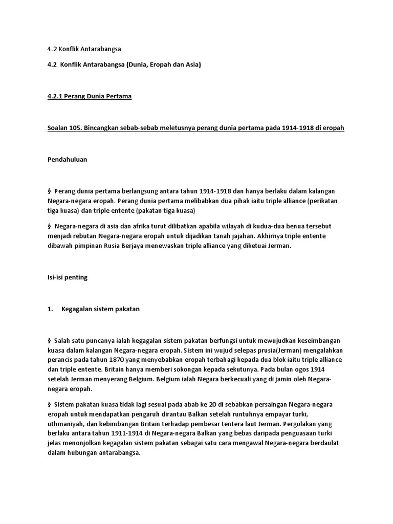 Faktor Pencetus Perang Dunia Pertama Dan Kesan2