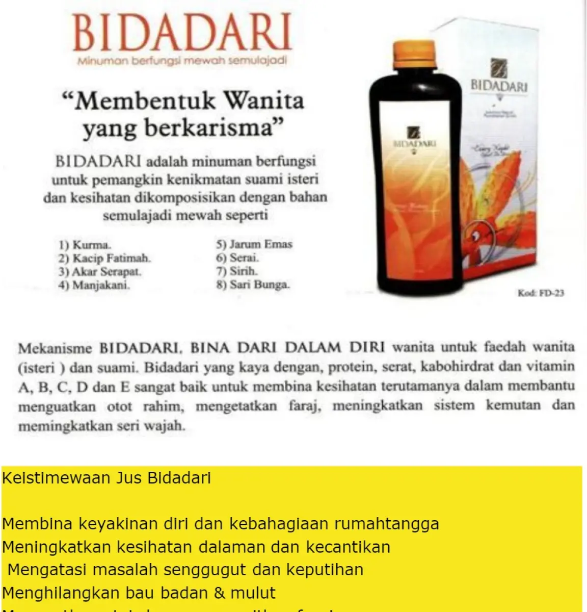 Jus Bidadari 350 Ml Mengatasi Masalah Senggugut Dan Keputihan Menghilangkan Bau Badan Mulut Menguatkan Otot Dan Menyempitkan Faraj Membina Dan Mengecutkan Rahim Menegangkan Payudara Lazada